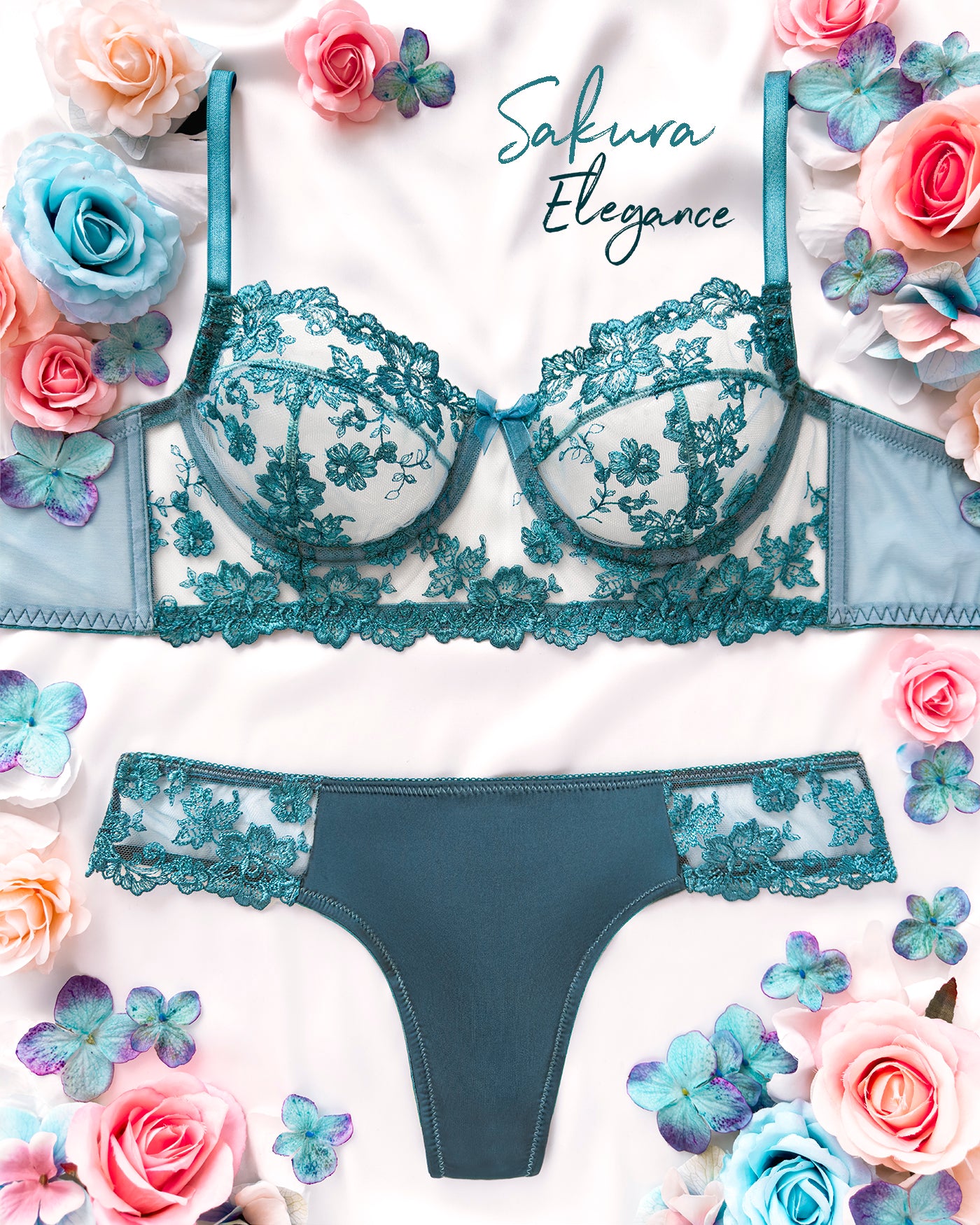 Sakura Elegance: lingerie couture in sei modelli esclusivi. Tulle, charmeuse e ricami tridimensionali per un’eleganza sofisticata, da indossare come una firma di stile. Il blu ottanio non è mai stato così affascinante!