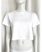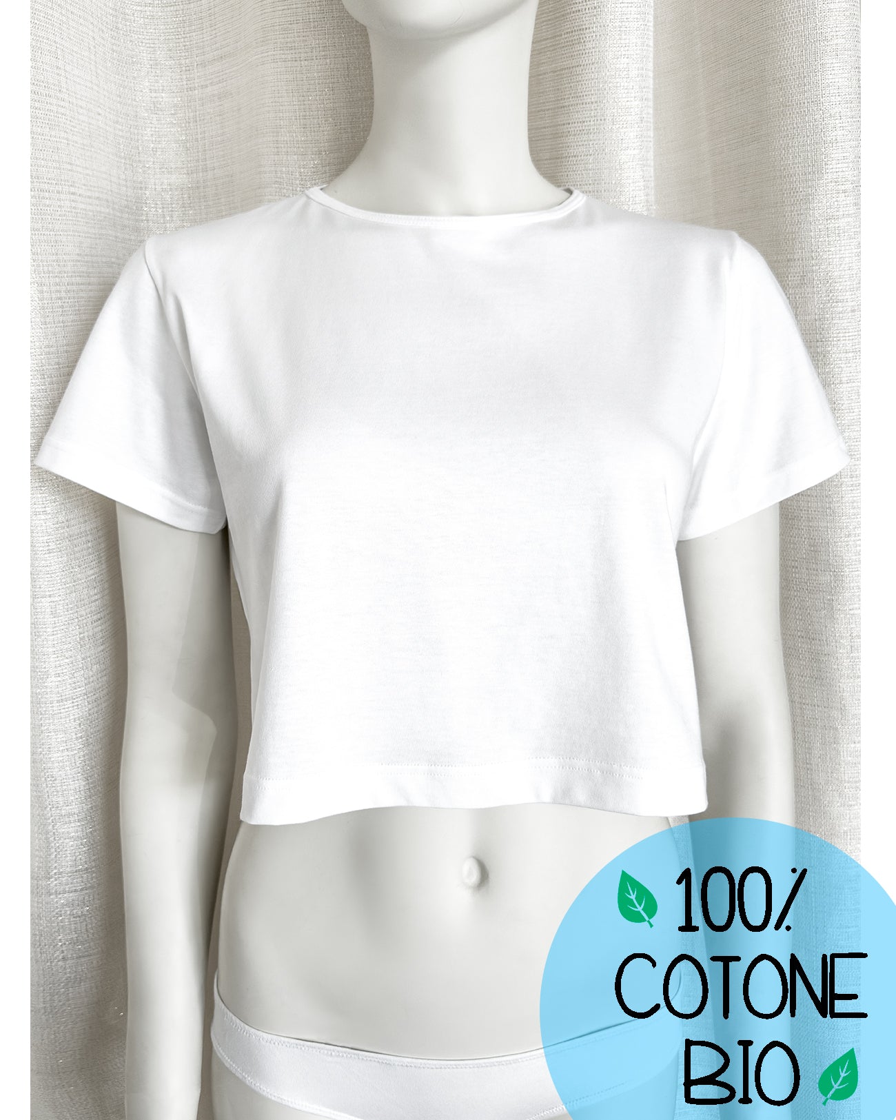 Maglia mezza manica corta in 100% cotone biologico. Morbidissima. Taglio dritto. Il crop top che non puoi non avere! Perfetta con tutto: con il tuo jeans preferito oppure con uno dei nostri deliziosi pantaloncini in raso!