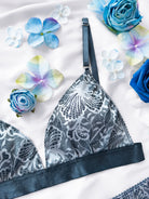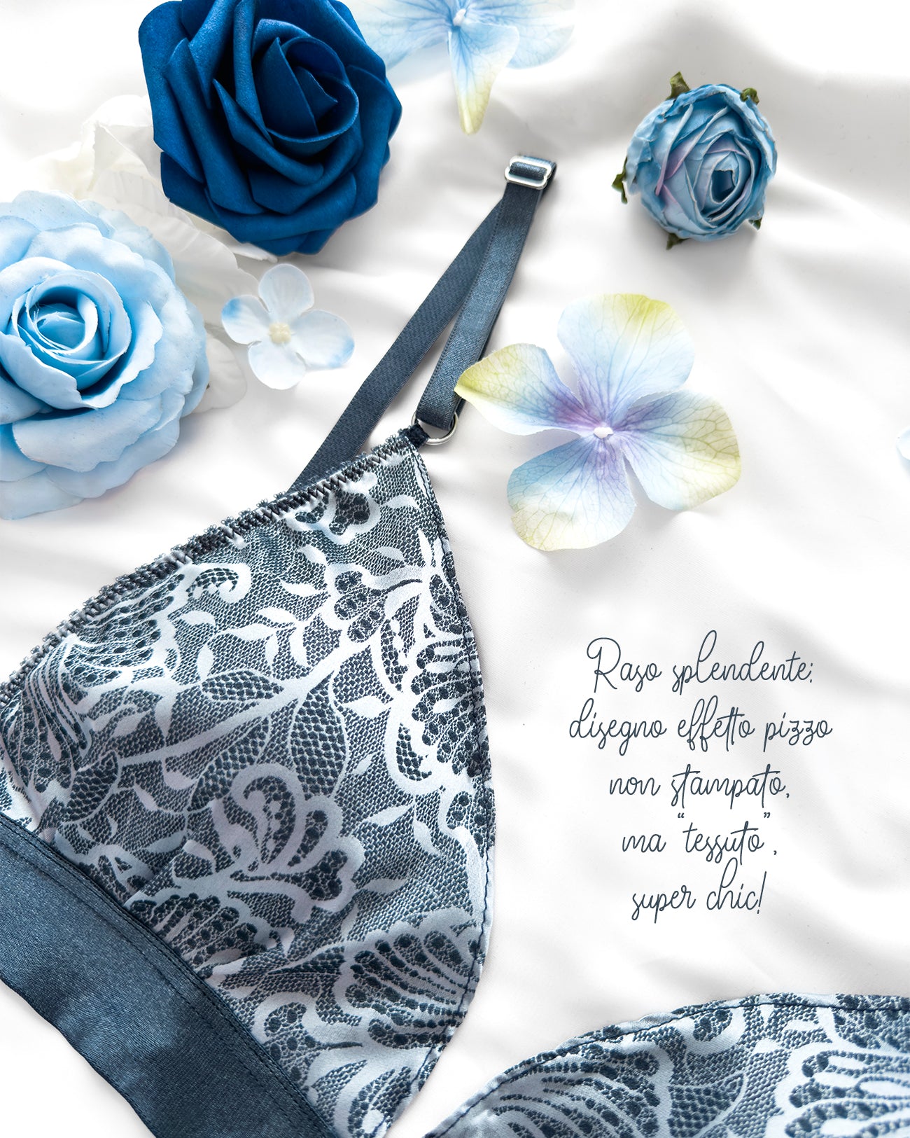 Elegante abbinamento argento e blu notte, prezioso raso e pizzo floreale. Sakura Night è pronto a stregarti!