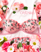 Meraviglioso ricamo a fiori, bicolor, rigorosamente 100% made in Italy. Un bouquet colorato (di una morbidezza infinita) dipinto sulla tua pelle. Una linea da collezione