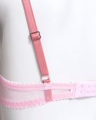 Reggiseno balconcino con coppa classica, ferretto e stecchette laterali. Realizzato in elegantissimo tulle ricamato a fiori bicolor. Deliziosa lavorazione a pacchetto della coppa per godere di tutta la bellezza del ricamo senza alcuna interruzione! Fusti laterali in tulle elasticizzato in nuance di colore.