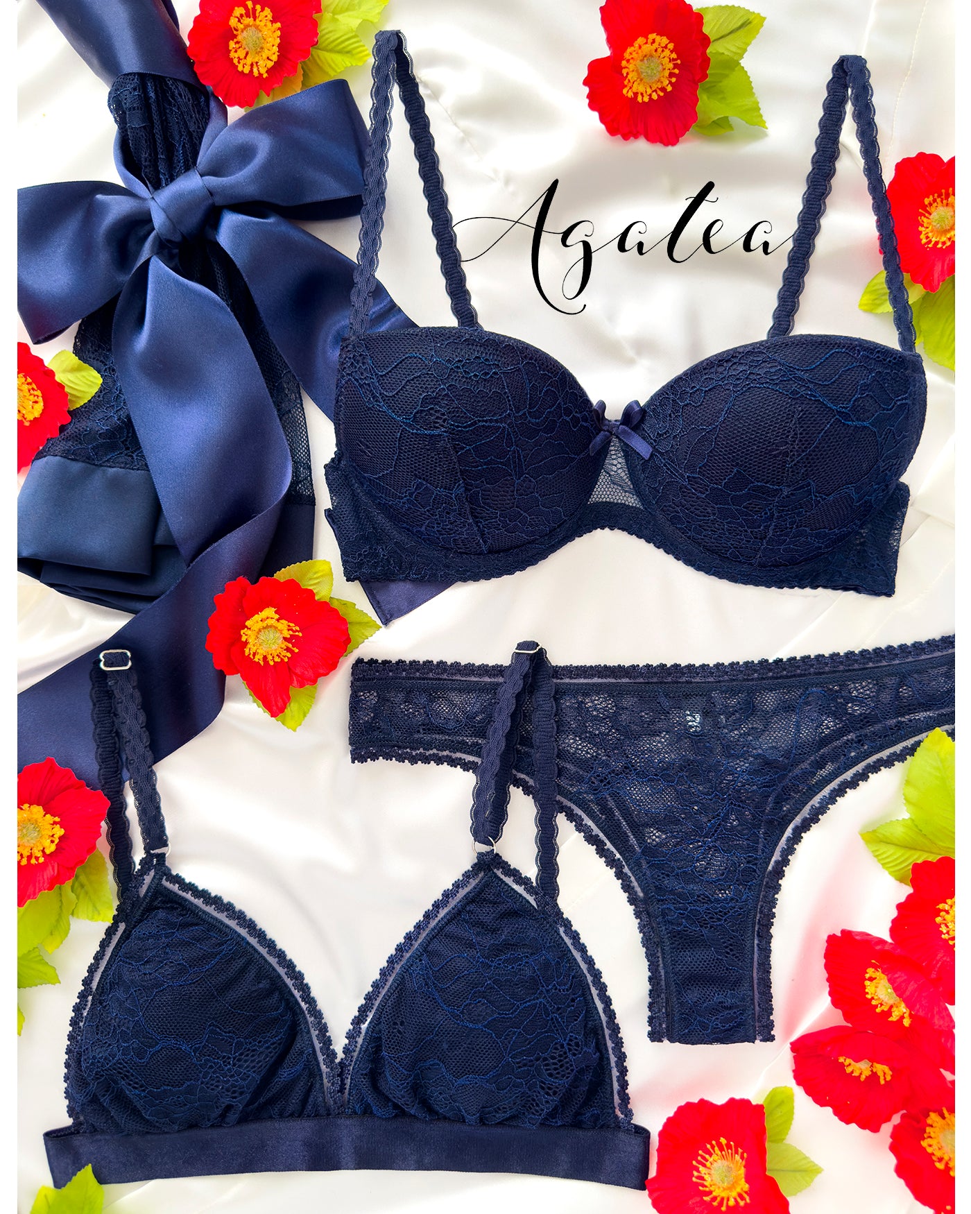 Pizzo blu profondo come il cielo notturno, un manto floreale che accarezza la tua pelle: benvenuta Agatea Night!