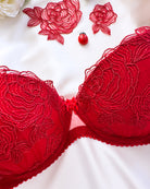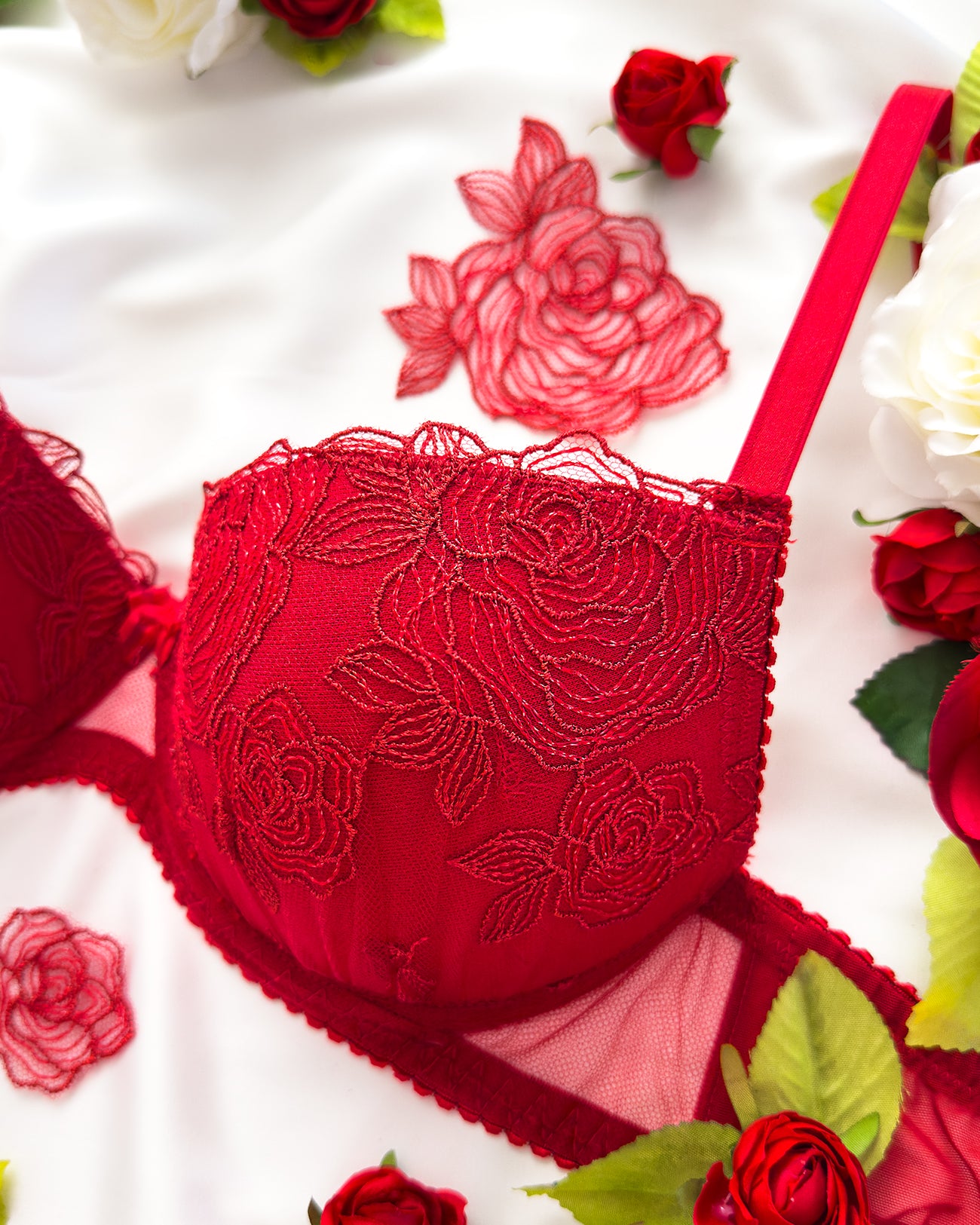 Reggiseno balconcino con coppa classica, ferretto e stecchette laterali. Realizzato in super chic tulle ricamato con rose ed inserti lurex. Deliziosa lavorazione a pacchetto della coppa per godere di tutta la bellezza del ricamo senza alcuna interruzione! Fusti laterali in tulle elasticizzato in nuance di colore.