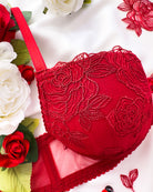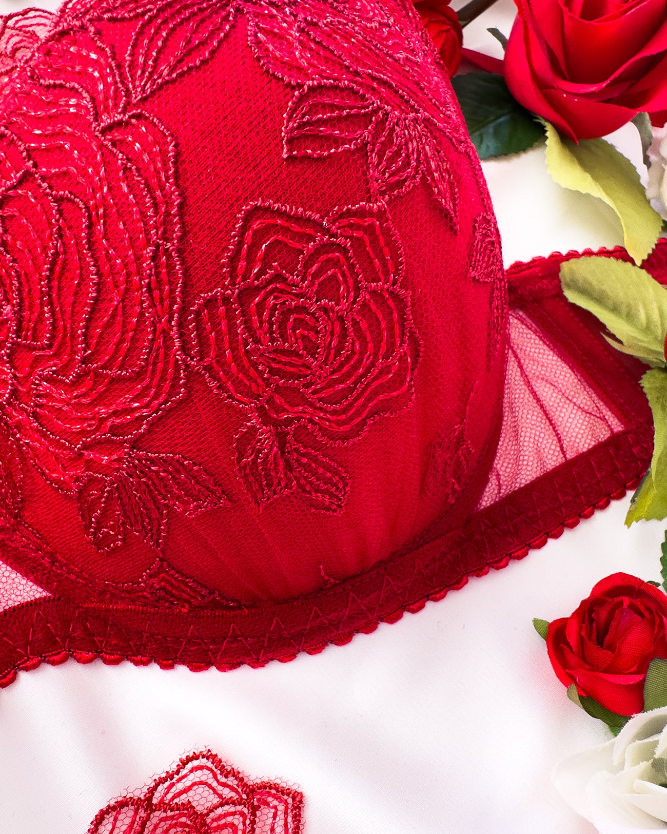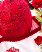 Meravigliose rose rosse ricamate su tulle morbidissimo. Inserti lurex: le rose brillano per davvero! Ricamo rigorosamente 100% made in Italy.