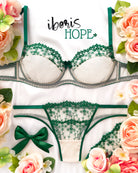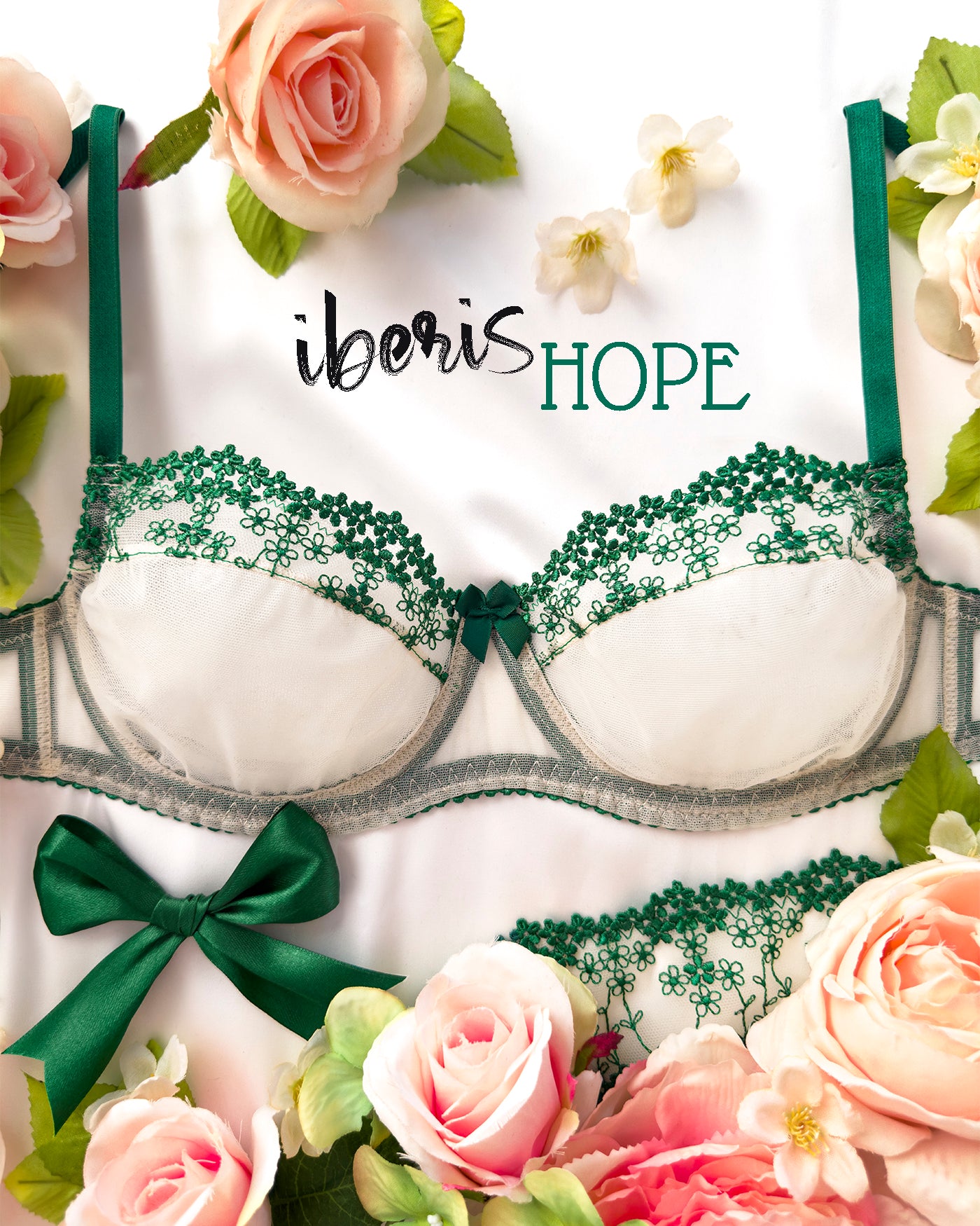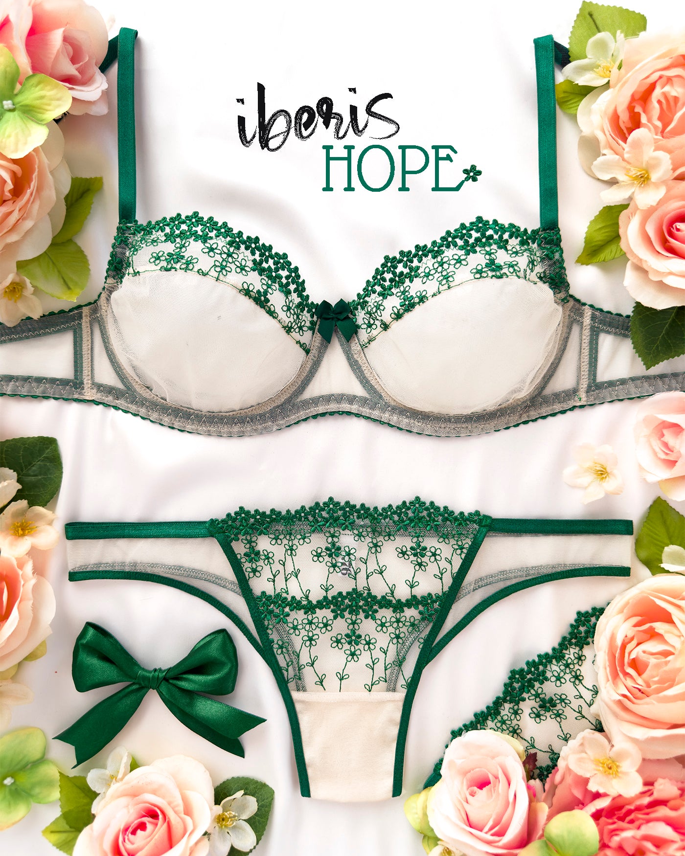Il ricamo del nostro (e vostro) cuore si tinge di verde speranza. Iberis HOPE è perfetto: un mix di trasparenza, fiorellini ricamati e dettagli lucidi verde speranza.