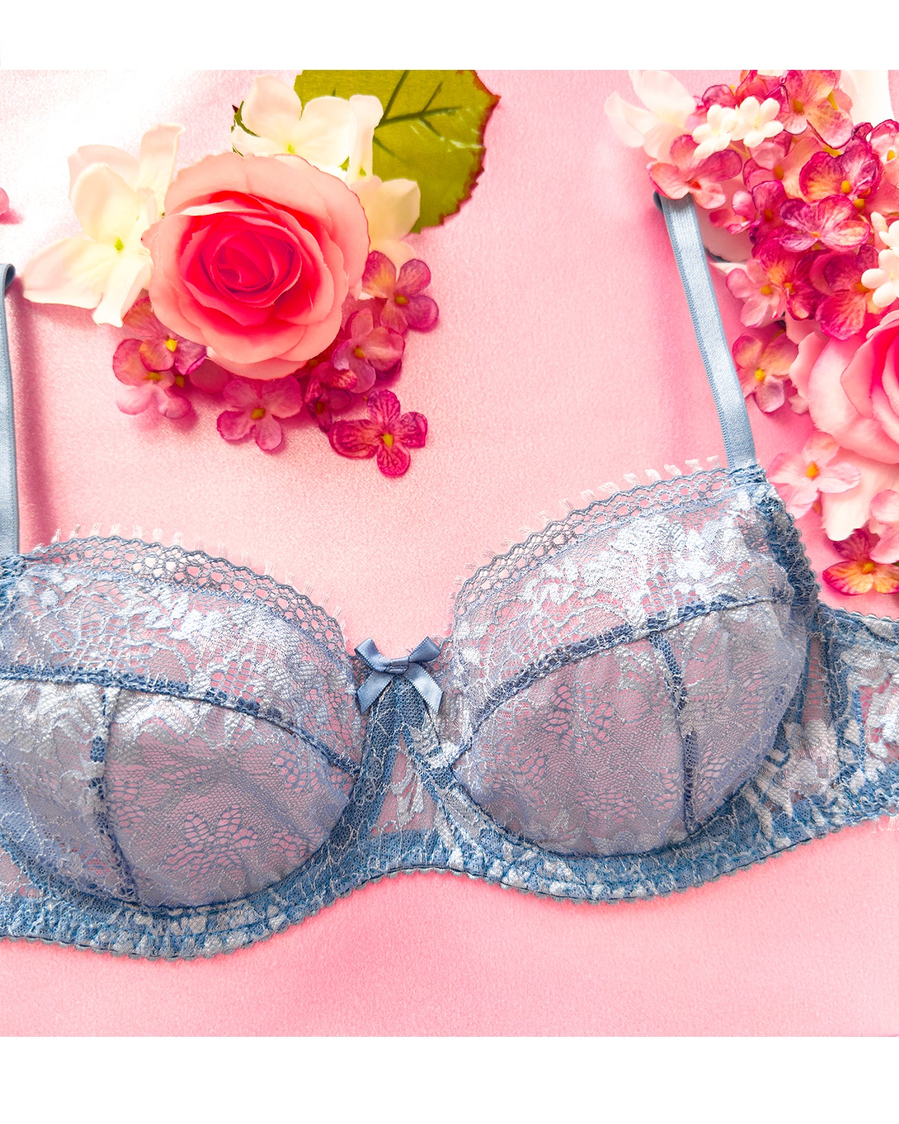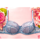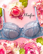 Reggiseno sfoderato con ferretto realizzato interamente in pizzo floreale carta da zucchero. Delizioso fiocchetto centrale in raso tono su tono. Un pizzo davvero speciale: piccole frangette ed un effetto tridimensionale tono su tono, i fiori sembrano emergere per magia! Ferretto e stecchette laterali.