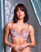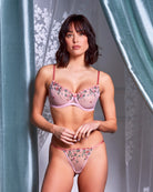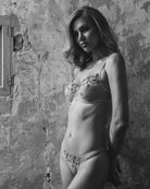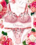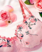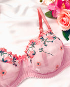Meraviglioso ricamo a fioridalle sfumature eleganti (rosa ciliegio, rosa pesca ed un ramage di foglie), rigorosamente 100% made in Italy. Un bouquet colorato (di una morbidezza infinita) dipinto sulla tua pelle. Una linea da collezione