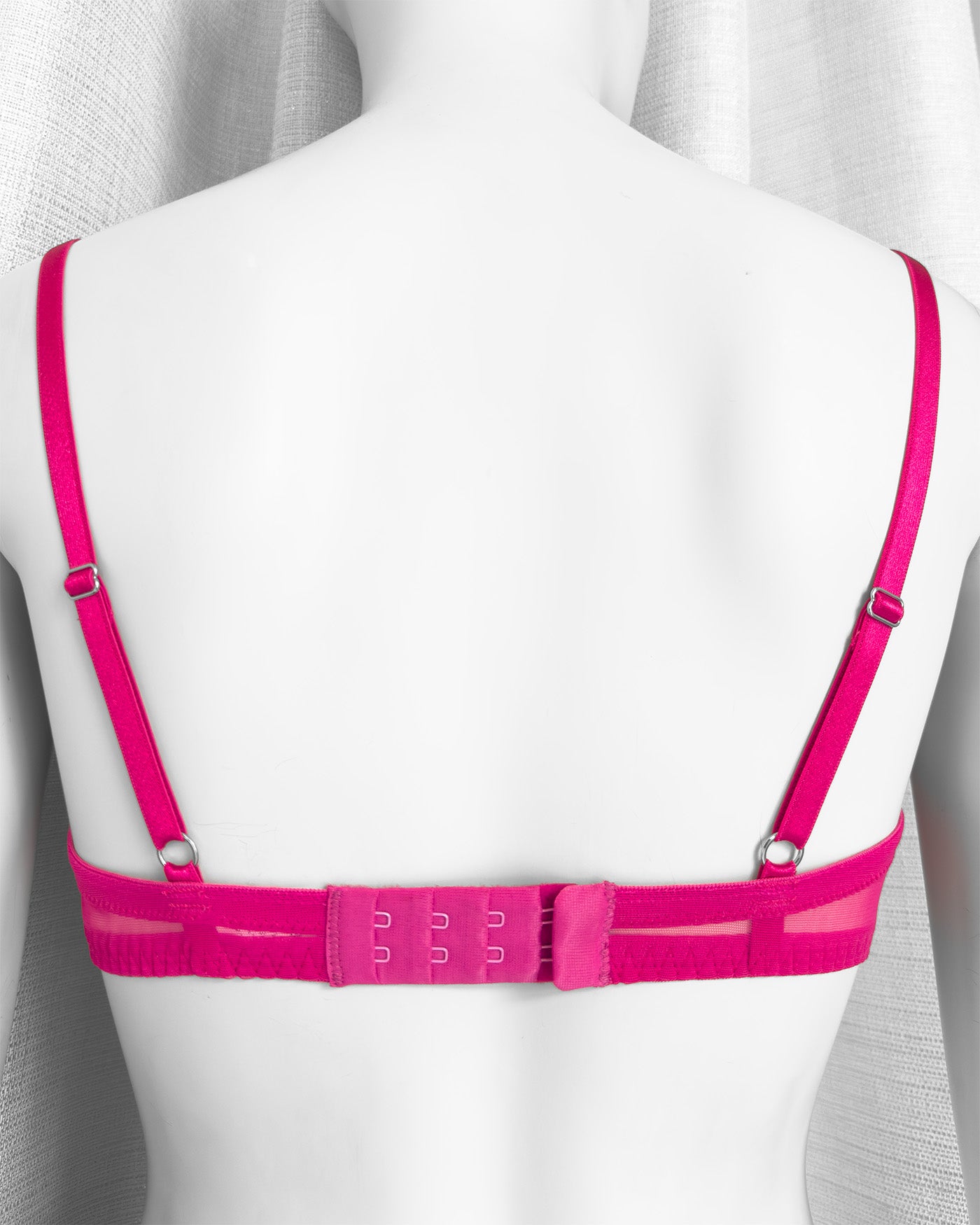 Ferretto e stecchette laterali. Spalline lucide elasticizzate e regolabili. Gancio regolatore a quattro posizioni per garantire la perfetta vestibilità. Anellini e regolatori in metallo nichel free argento: mai dimenticare l’importanza degli accessori!