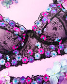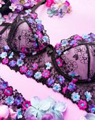 Un giardino segreto che sboccia sul tulle nero: Aster Noir, dove sensualità e brio si intrecciano in fiori ricamati di luce.