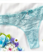 con disegno floreale. Speciale doppio fiocco centrale in raso sottile con pendente a goccia gioiello (nichel free). Grazie alla lavorazione il capo risulta comodissimo e non segna sui glutei! Pattina interna in 100% cotone.
