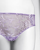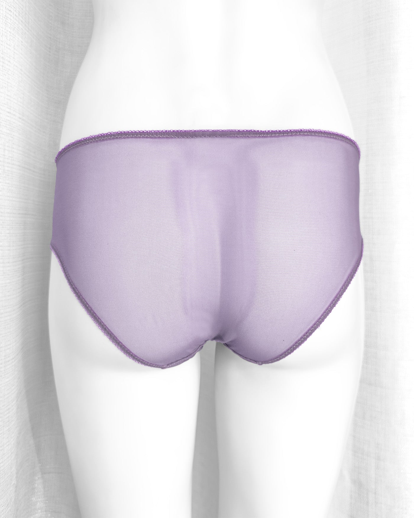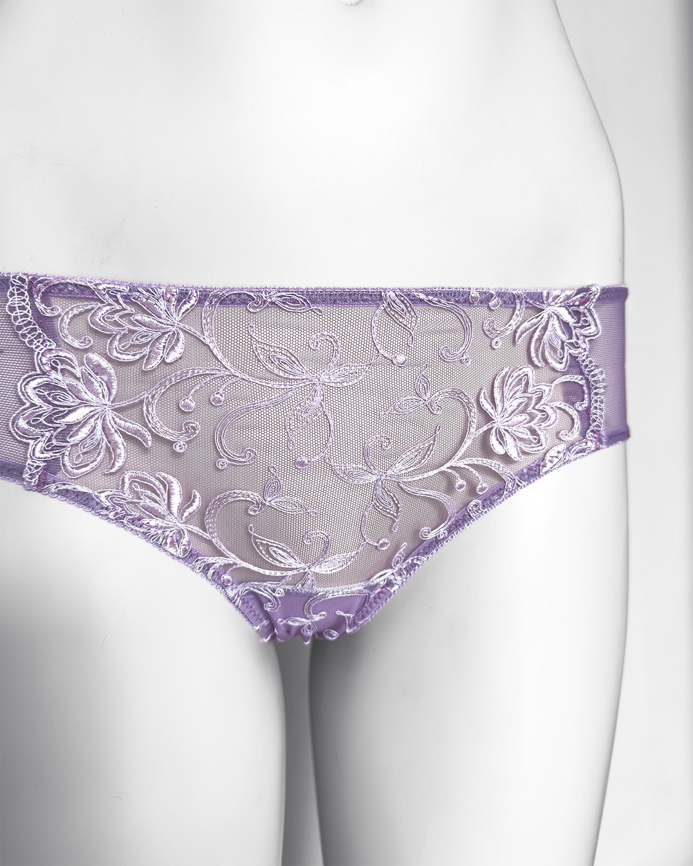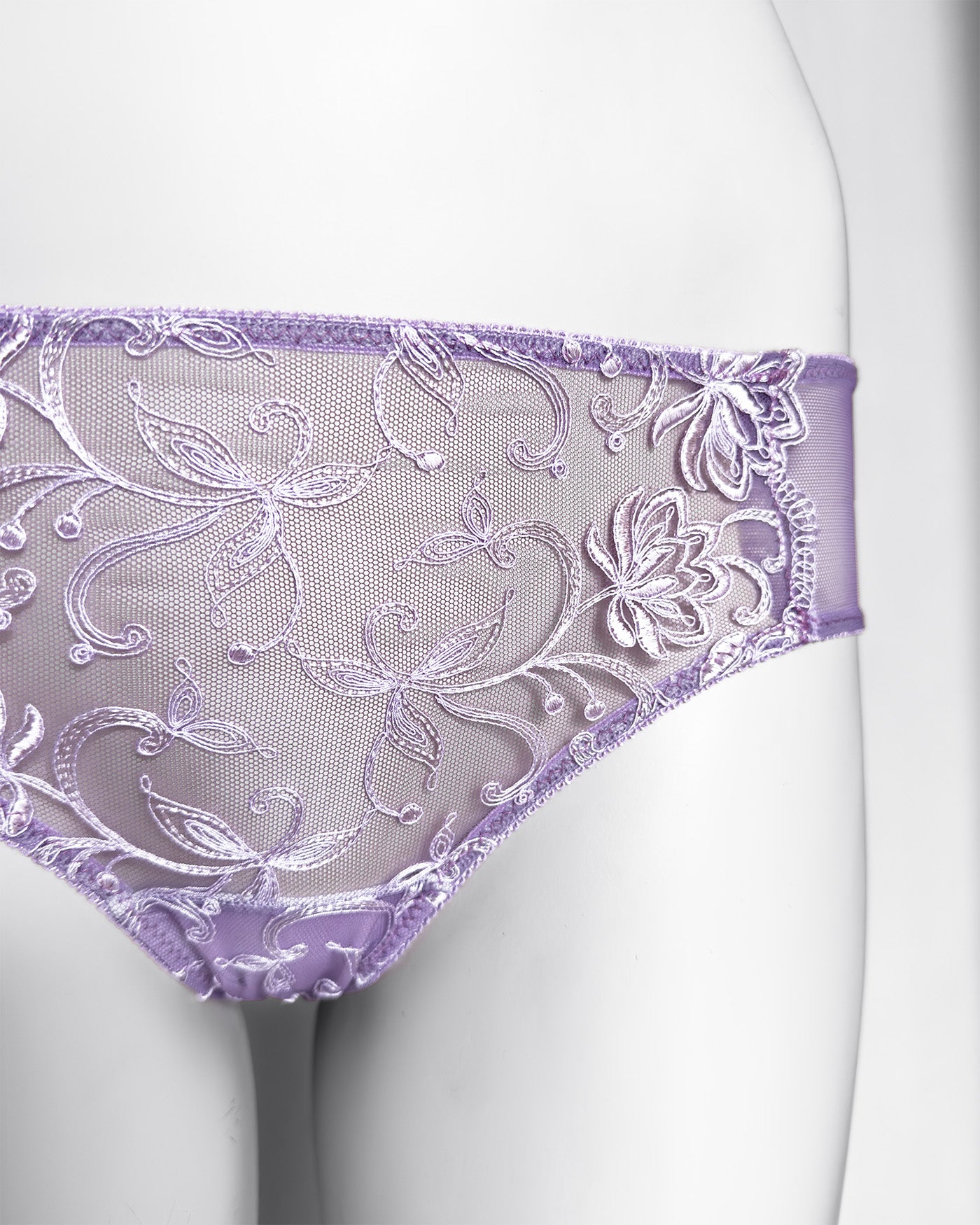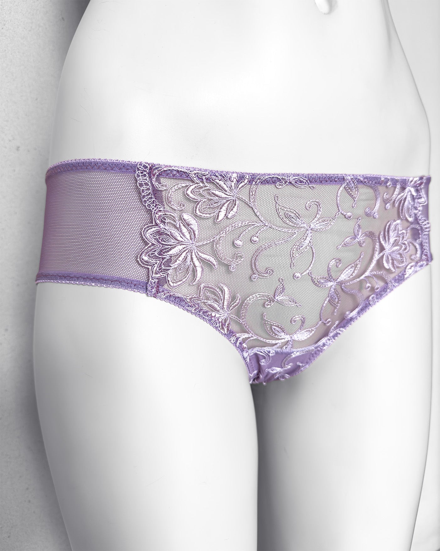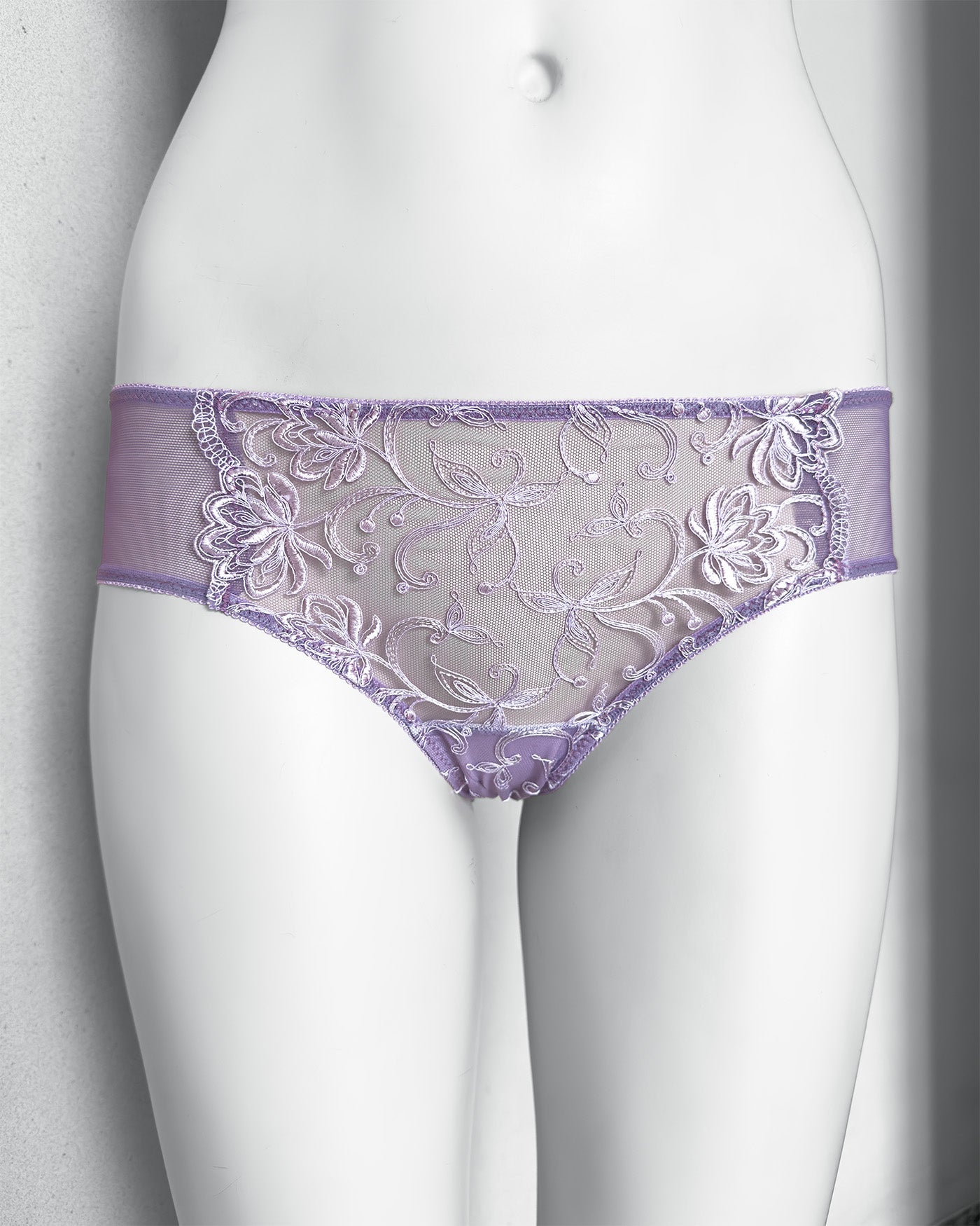 Slip a vita media. Parte frontale con inserto in elegantissimo tulle ricamato. Il resto del capo è realizzato interamente in tulle elasticizzato in nuance: sensuale trasparenza e comodità assicurate! Elastico a cerchietti.