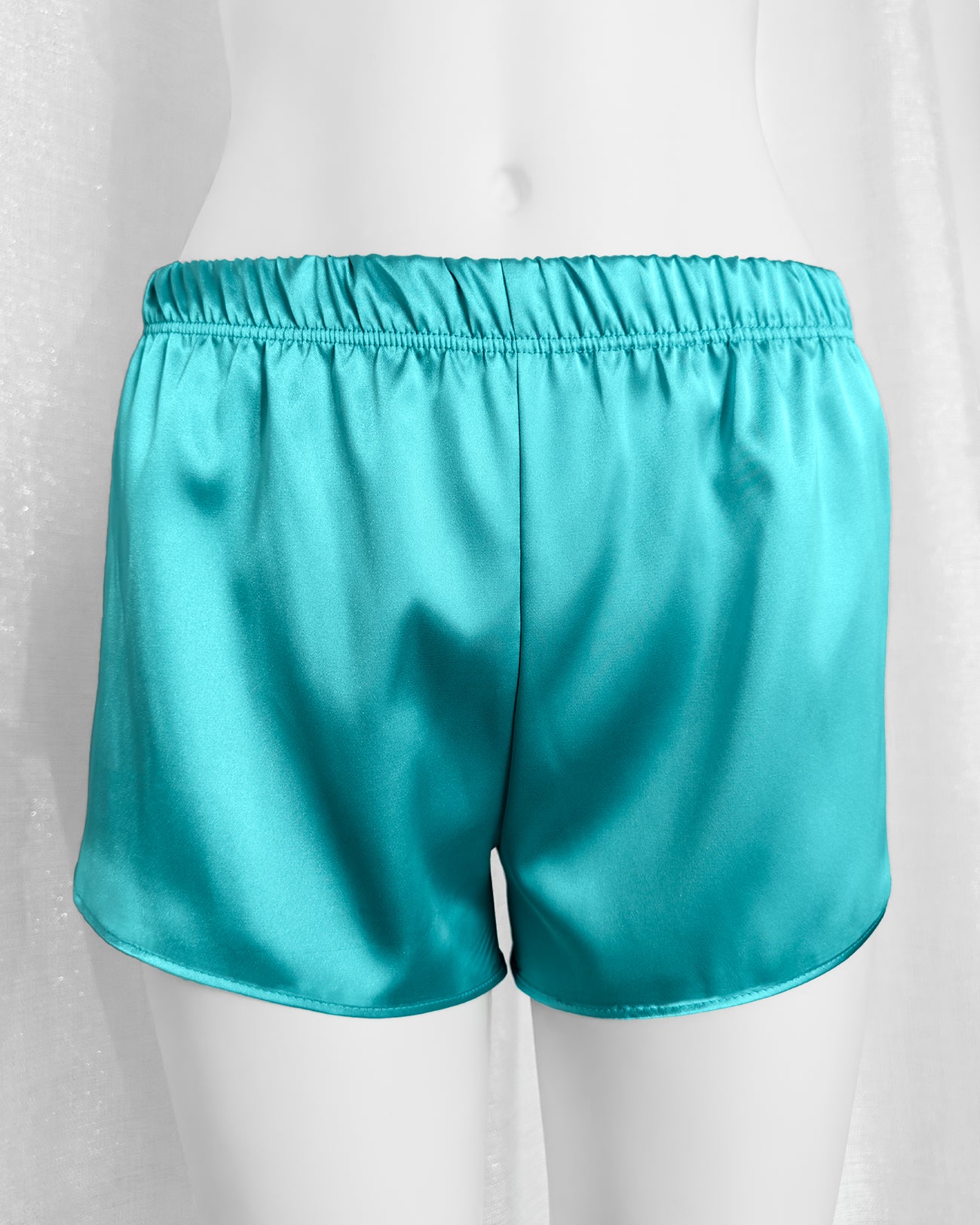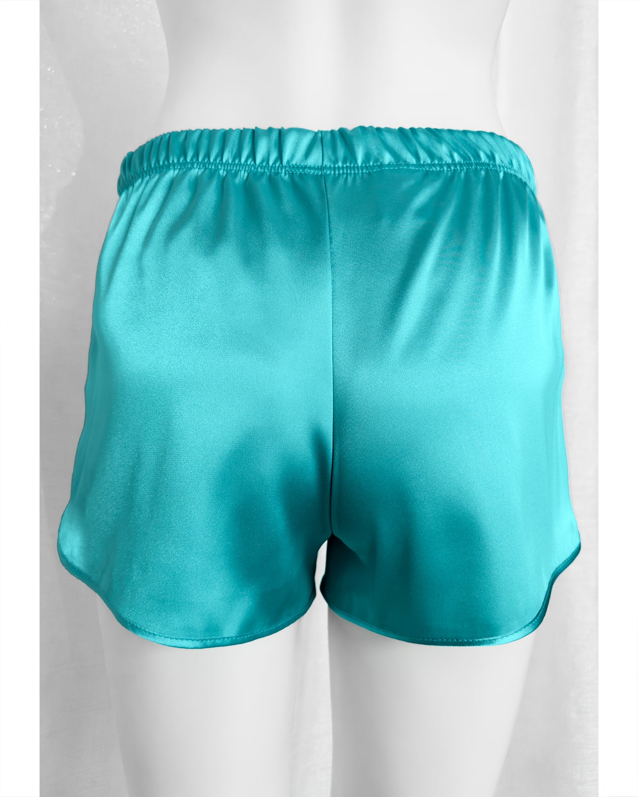 Pantaloncino pigiama in morbidissimo raso lucido color Tiffany. Vita elasticizzata per renderlo ancora più comodo!