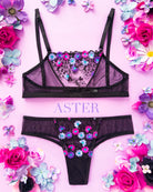 Un giardino segreto che sboccia sul tulle nero: Aster Noir, dove sensualità e brio si intrecciano in fiori ricamati di luce.