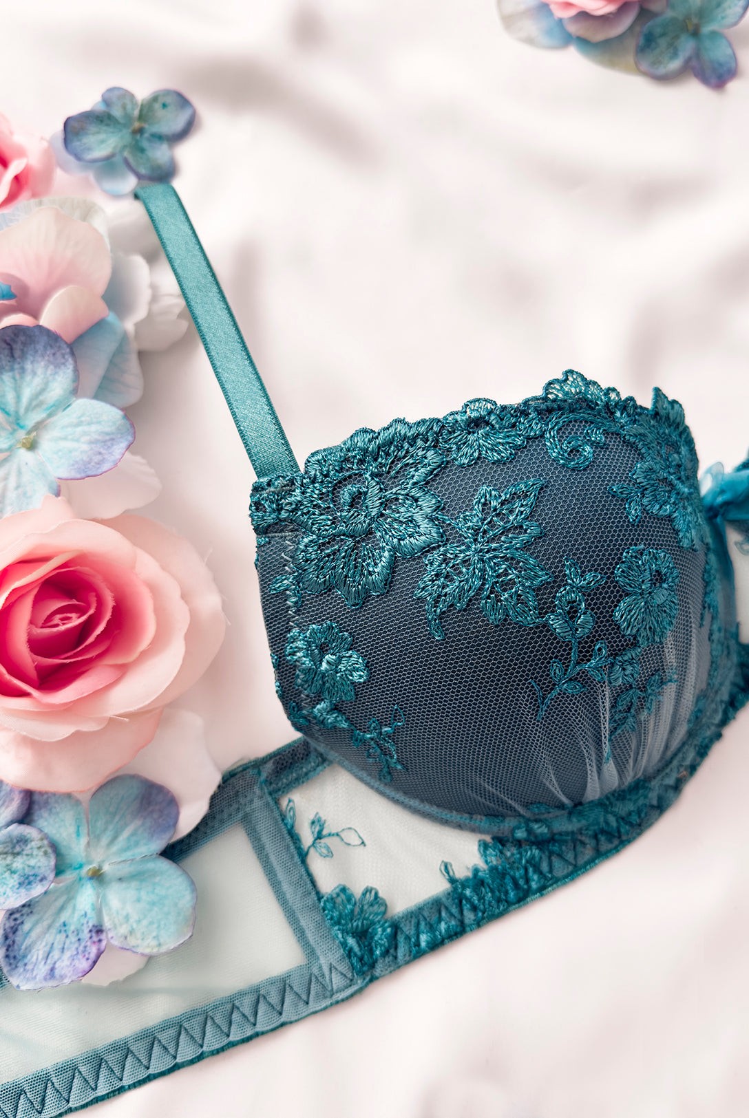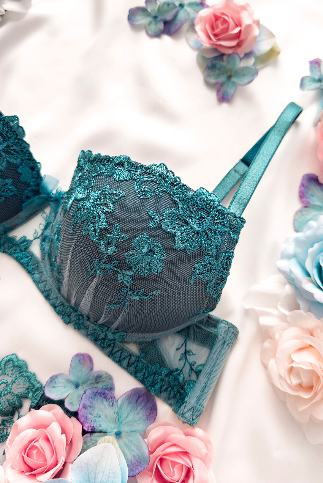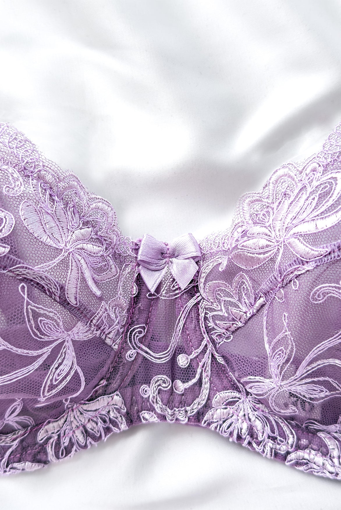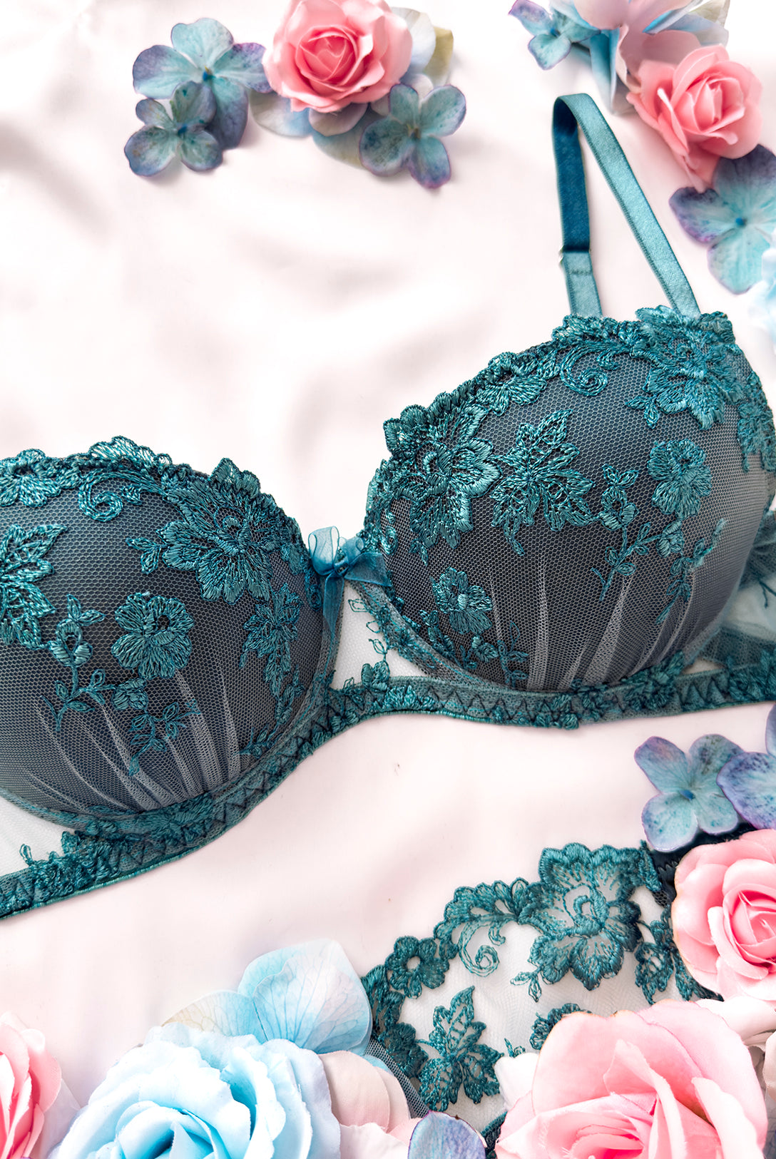 Reggiseno push-up realizzato interamente in pizzo arancio ruggine con fiori cordonati (disegno pazzesco), inserti luminosi (tutto è più bello quando brilla) e con base microretata. Fiocco centrale in raso in abbinamento.