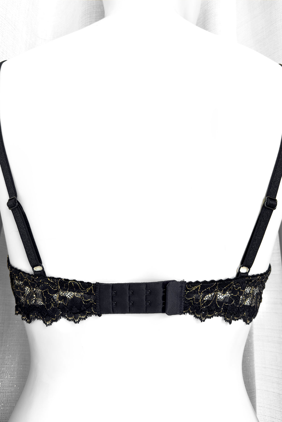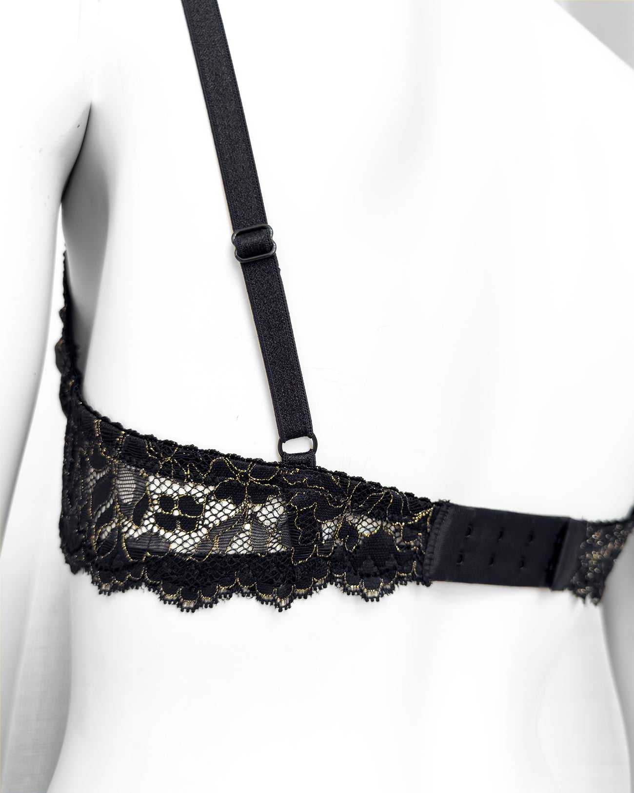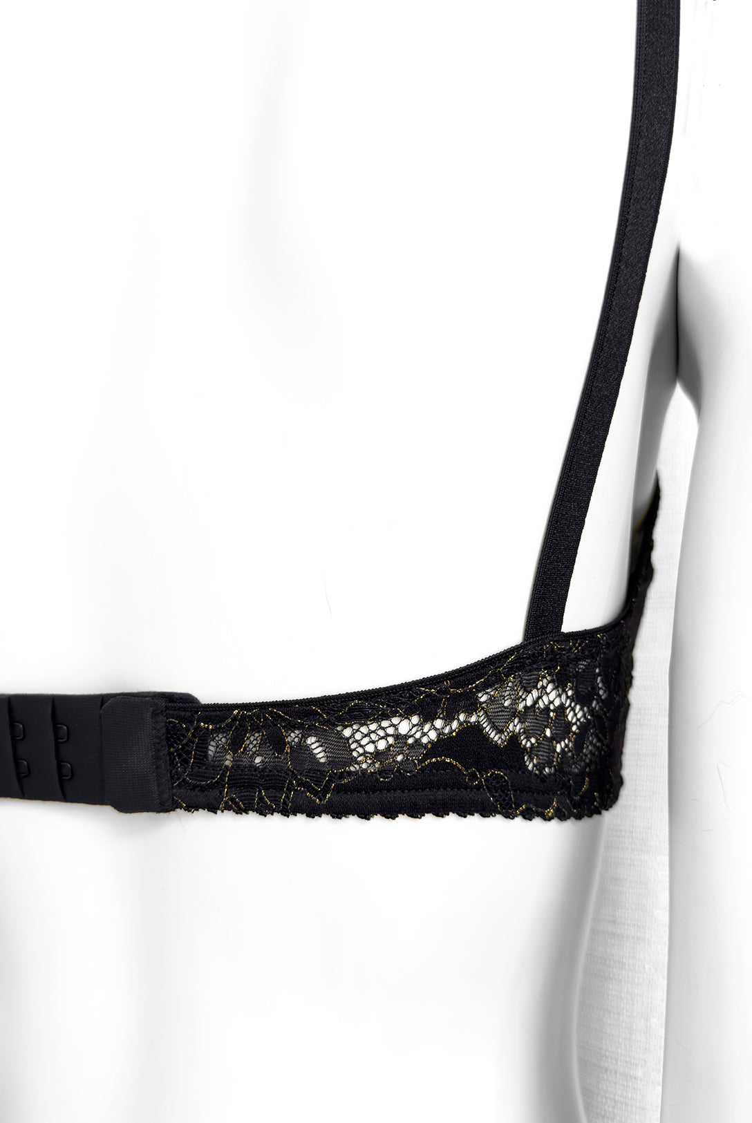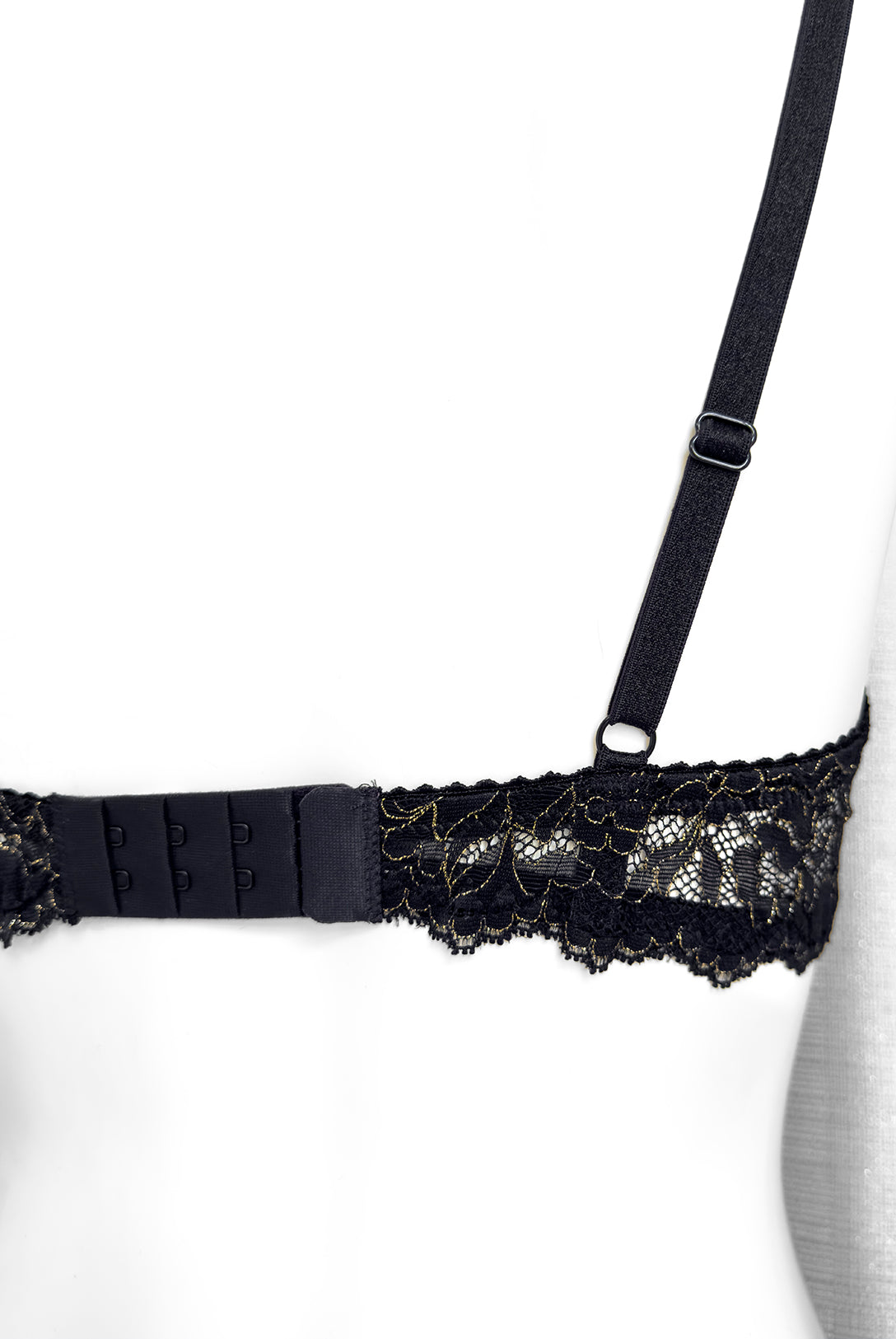 Ferretto e stecchette laterali. Spalline lucide elasticizzate e regolabili. Gancio regolatore a quattro posizioni per garantire la perfetta vestibilità. Anellini e regolatori in metallo nichel free oro: mai dimenticare l’importanza degli accessori!