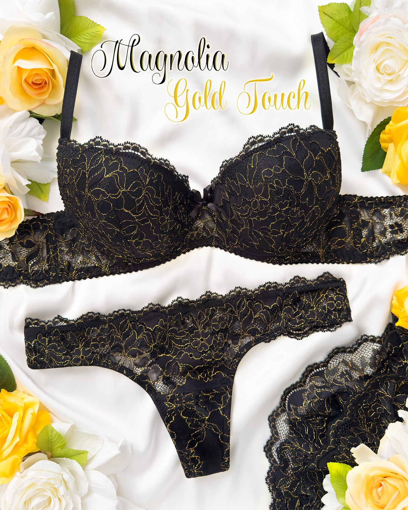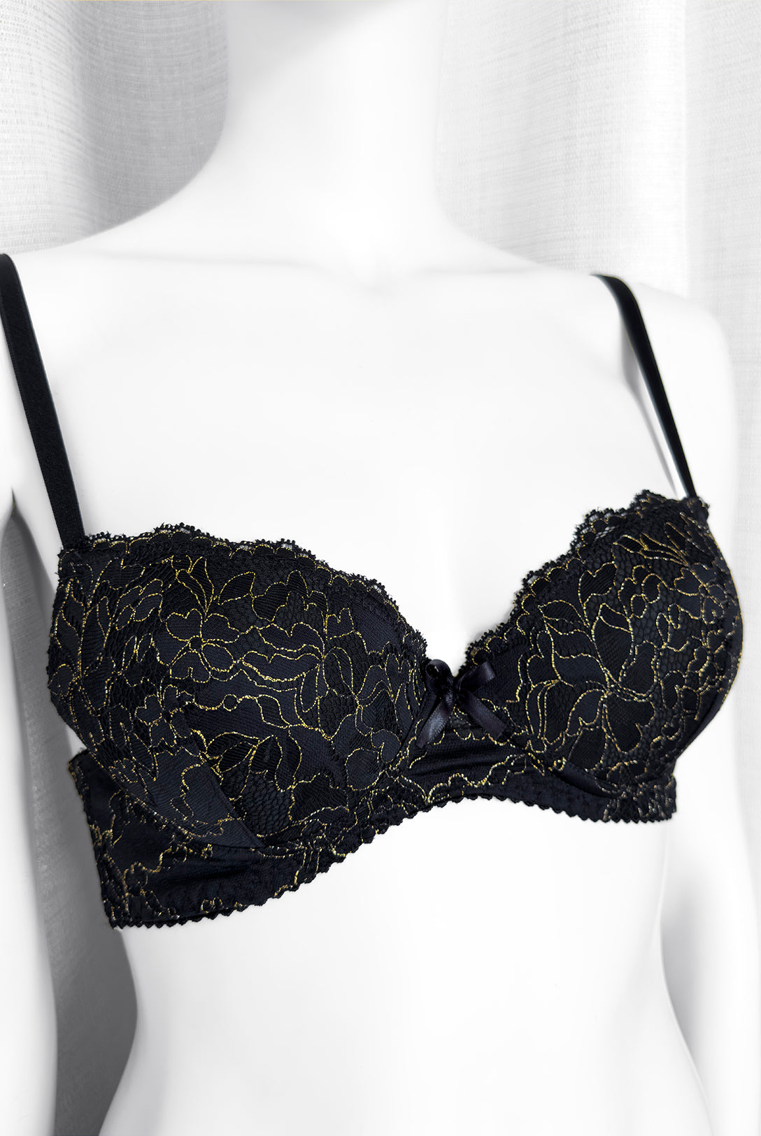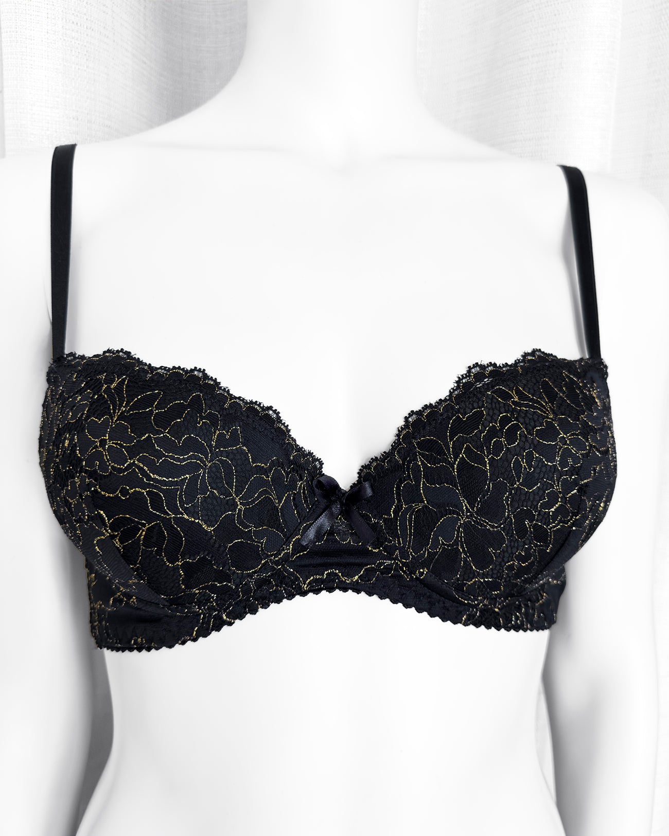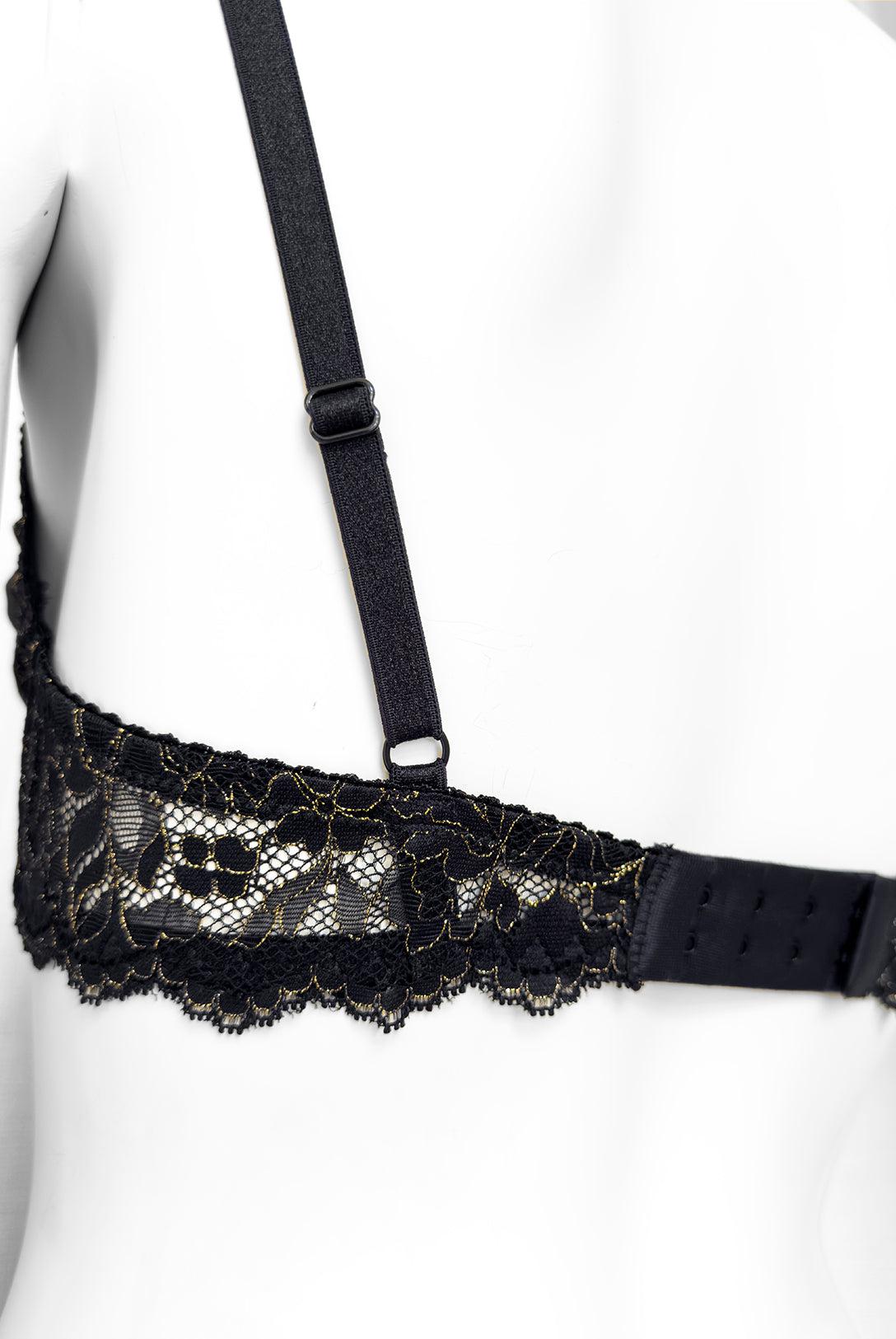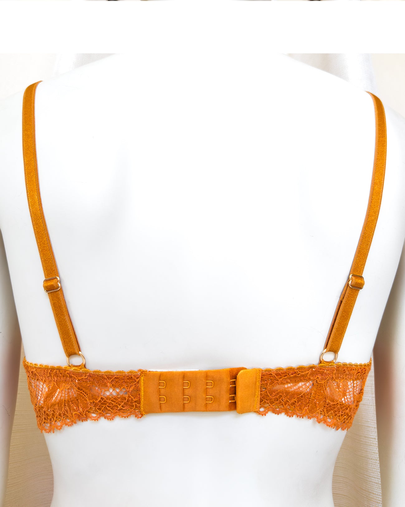 Ferretto e stecchette laterali. Spalline lucide elasticizzate e regolabili. Gancio regolatore a quattro posizioni per garantire la perfetta vestibilità. Anellini e regolatori in metallo nichel free oro: mai dimenticare l’importanza degli accessori!